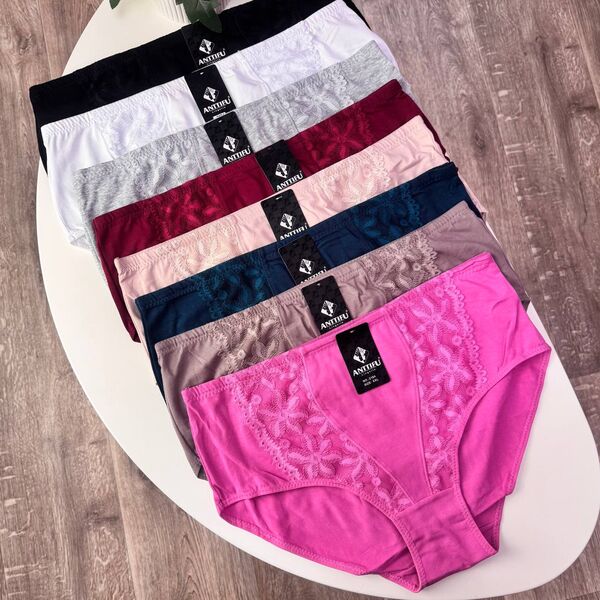 Жіночі бавовняні трусики Anttifu #2184 - представлені в різних кольорах і розмірах, завдяки чому кожна дівчина зможе вибрати для себе найкращий варіант. Дані трусики спереду та позаду декоровані щільним мереживом. Жіночі трусики #2184 виглядають стильно та сучасно, завдяки цьому вони ідеально підкреслять вашу фігуру та нададуть вам впевненості у собі, дані трусики поєднують у собі комфорт, практичність, високу якість, а також стильний дизайн. Жіночі трусики #2184 мають зручну посадку, завдяки цьому вони чудово сидять на тілі, що забезпечить вам почуття комфорту на протязі всього дня, трусики зроблені з якісних та натуральних матеріалів, які добре пропускають повітря та дозволяють вашій шкірі дихати.
