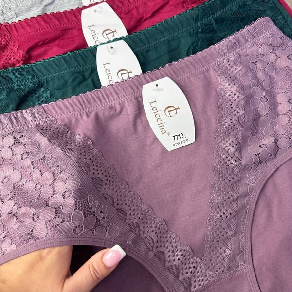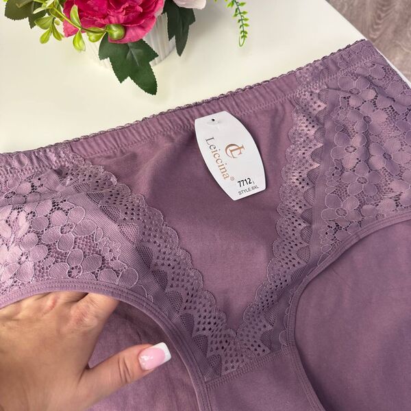 Жіночі бавовняні трусики Leiccina #7712 батальні - ідеальний варіант на кожен день, приємна до тіла тканина добре прилягає до тіла і дарує відчуття комфорту, дана модель поєднує в собі стильний дизайн, комфорт та практичність, трусики мають зручну середню посадку. Жіночі трусики #7712 зроблені з якісних та натуральних матеріалів, завдяки чому вони зможуть прослужити довгий час, трусики досить легкі, тому ви практично не відчуватимете їх. Жіночі трусики #7712 зможуть стати чудовим придбанням для кожної жінки, тому що мають корегующий ефект ,за рахунок швів попереду та крою білизни, в них ви почуватиметеся впевнено та комфортно протягом усього дня.