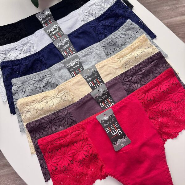 Жіночі бавовняні мереживні стрінги Biweier #3028 - поєднують у собі високу якість, елегантний дизайн, комфорт та практичність, дана модель має приємну до тіла тканину, яка добре пропускає повітря та дозволяє вашій шкірі дихати. Жіночі трусики #3028 декоровані гарним якісним мереживом, трусики мають стильний і сучасний дизайн, який, напевно, сподобається кожній дівчині. Жіночі бавовняні трусики стрінги #3028 чудово сидять на тілі, не скочуються та ніде не натирають, висока якість дозволить їм прослужити вам довгий час, такі трусики зможуть забезпечити вам почуття комфорту протягом усього дня.