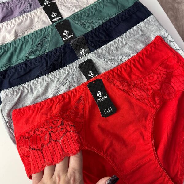 Жіночі бавовняні трусики Anttifu #9072 - декоровані оздобленням із двокольоровим мереживом вони мають стильний і сучасний дизайн, який вам напевно дуже сподобається. В інтернет-магазині Білизна-опт ви знайдете трусики різних моделей, кольорів та розмірів. Жіночі трусики Anttifu #9072 мають зручну посадку, вони чудово сидять на фігурі, це ідеальний варіант на кожен день, це стильна, якісна та зручна модель, яка зможе забезпечити вам максимальний комфорт протягом усього дня. Жіночі трусики #9072 досить легкі, тканина добре пропускає повітря, що дозволяє вашій шкірі дихати, вони виготовлені з якісних та зносостійких матеріалів, що забезпечує їм довгий термін служби.